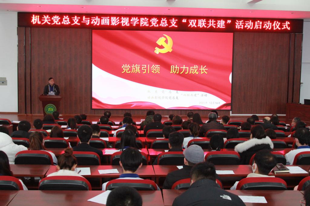 为贯彻落实《金年会开展“党员联系贫困学生、中层及以上领导干部联系班级活动”实施方案》,进一步加强和改进领导干部、党员深入基层联系群众的作风,充分发挥党员在教书育人、管理育人、服务育人的作用,引导学生树立正确的世界观、人生观、价值观,12月16日,机关党总支与动画影视学院党总支在多功能厅举行“党旗引领 助力成长”主题双联共建活动启动仪式。党委书记乔佩科、院长孙桂芳等学院领导出席活动,机关、动画影视学院师生参加活动。会议由机关党总支书记郭颂主持。