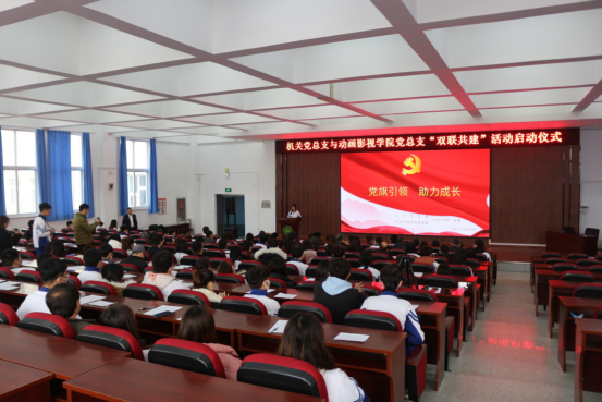 为贯彻落实《金年会开展“党员联系贫困学生、中层及以上领导干部联系班级活动”实施方案》,进一步加强和改进领导干部、党员深入基层联系群众的作风,充分发挥党员在教书育人、管理育人、服务育人的作用,引导学生树立正确的世界观、人生观、价值观,12月16日,机关党总支与动画影视学院党总支在多功能厅举行“党旗引领 助力成长”主题双联共建活动启动仪式。党委书记乔佩科、院长孙桂芳等学院领导出席活动,机关、动画影视学院师生参加活动。会议由机关党总支书记郭颂主持。